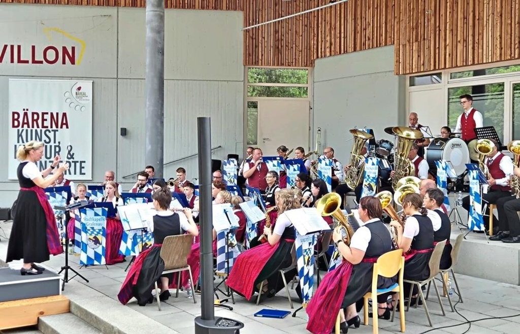 Auch heuer spielt die Stadtkapelle Grafenau wieder ein Kurzkonzert im Bäreal in Grafenau. Egal, was das Wetter verspricht, die Musiker wollen in jedem Fall Sommer, Sonne und gute Laune in jeder Hinsicht präsentieren. Los geht es um 17 Uhr und wer etwas früher kommt, kann sich schon vorab mit Getränken versorgen oder frisch gemachtes Popcorn verzehren. Perfekt ausgerüstet geht es dann in die erste Halbzeit. Die Stadtkapelle hat dabei sowohl traditionelle als auch modern interpretierte bayerisch-böhmische Blasmusik im Gepäck. Voll auf ihre Kosten kommen in jedem Fall die Nachwuchsmusiker der Stadtkapelle. Sie haben kräftig geübt und bringen bemerkenswerte Musik auf die Bühne vor dem Kulturpavillon. In der Pause werden die Gäste wie immer vom Förderverein der Stadtkapelle Grafenau bestens mit Getränken und mitgebrachten Schmankerln versorgt. Der Eintritt ist natürlich frei, die Musikerinnen und Musiker würden sich aber über eine Spende sehr freuen.